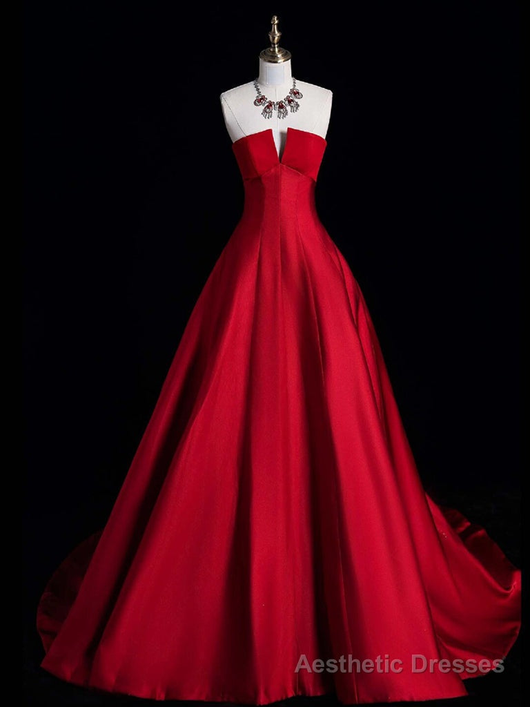 A-Line Burgundy Satin Long Prom Dress, Burgundy Long Formal Dress