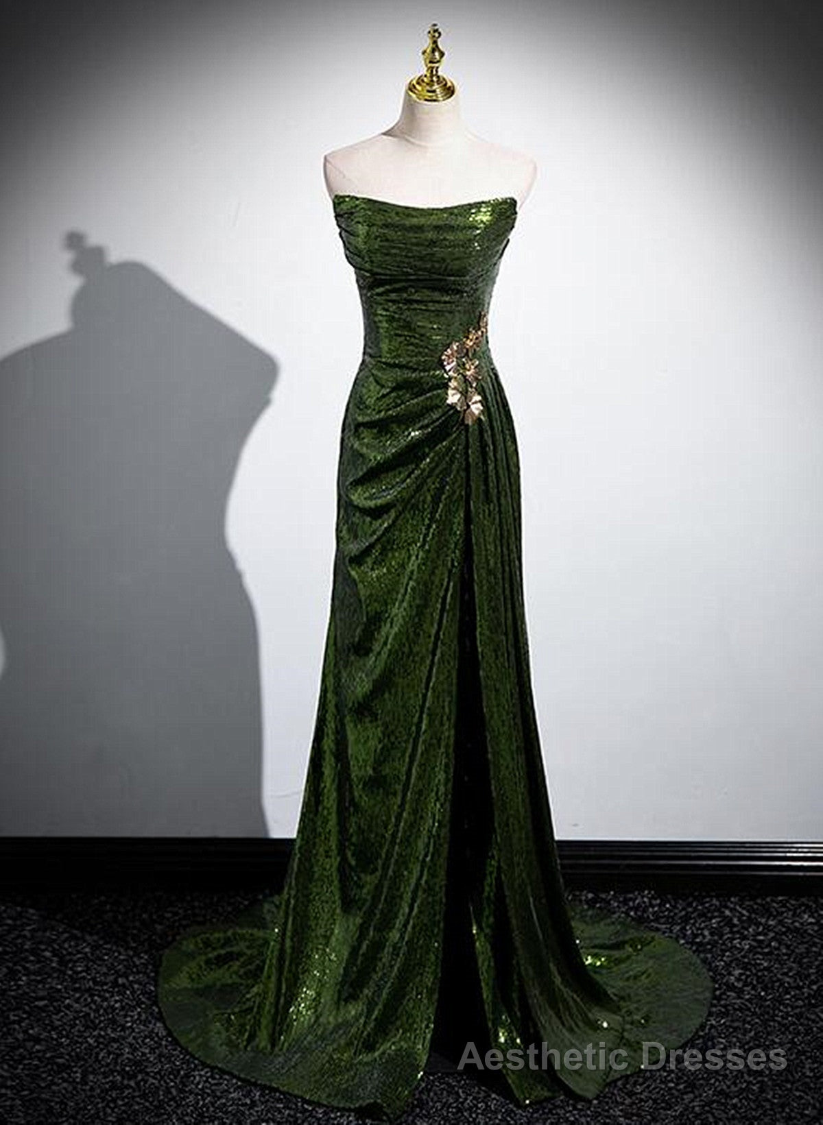 A-line Green Sequins Mermaid Long Party Dress, Mermaid Sequins Green Prom Dress
