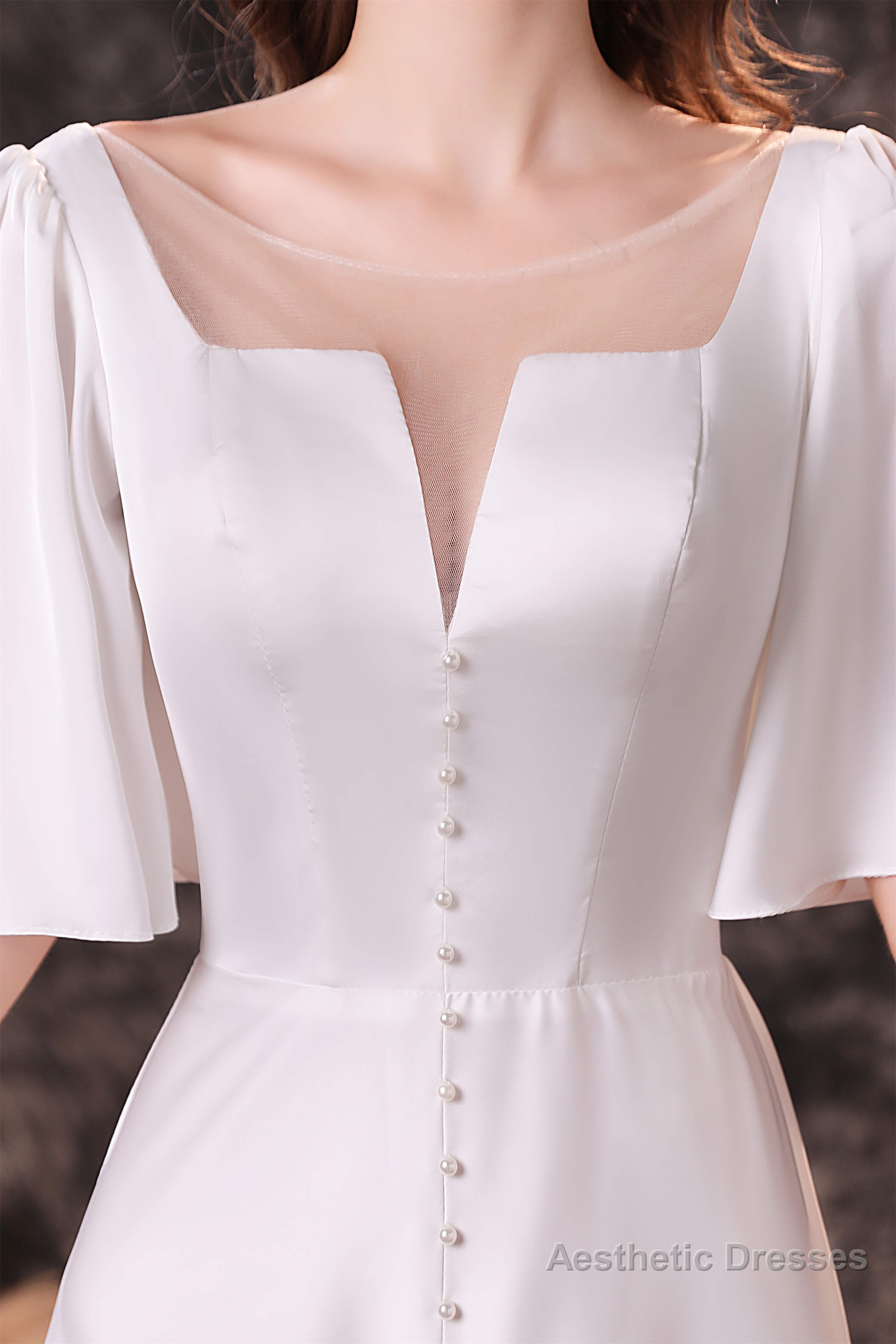 A Line Half Sleeves Ombre Silk Like Satin Floor Length Prom Dresses