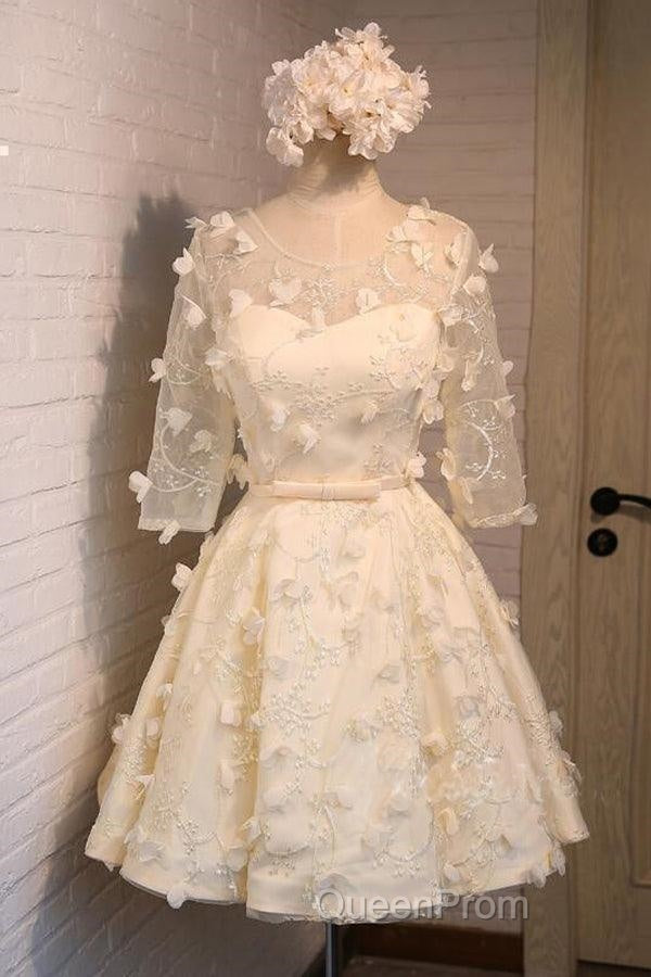 A-Line Half Sleeves Tulle Homecoming Dresses With Appliques