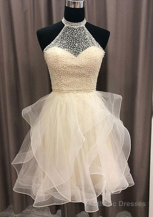 A-line High-Neck Sleeveless Organza Short/Mini Homecoming Dress With Beading