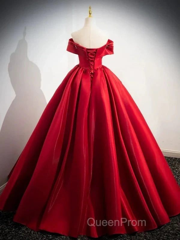 A-Line Off Shoulder Satin Red Ballgown Long Evening Prom Dresses Evening Dresses Floor Length