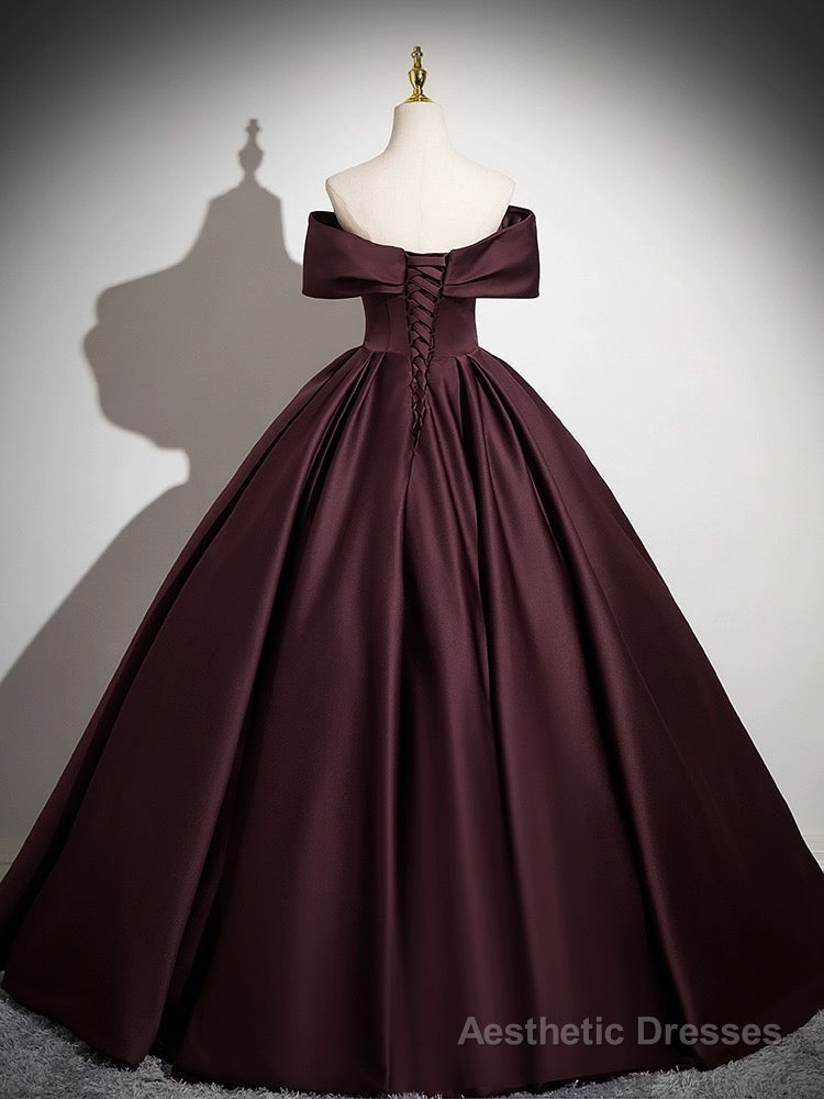 A-Line Off the Shoulders Satin Maroon Long Prom Dress, Maroon Long Formal Dress