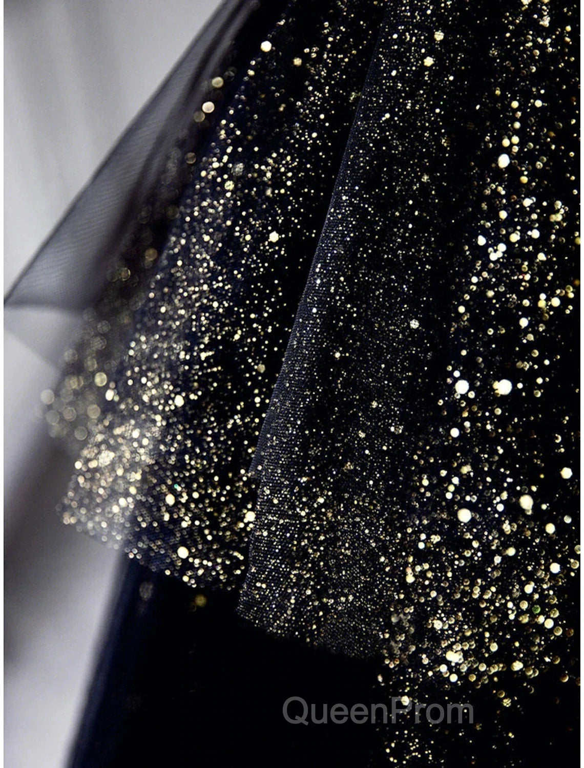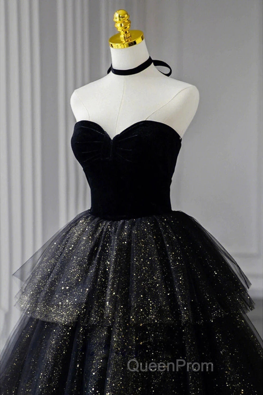 A-Line Evening Prom Dresses Black Dresses Dresses Formal Birthday Floor Length Sleeveless Strapless Tulle With Ruched Sequin