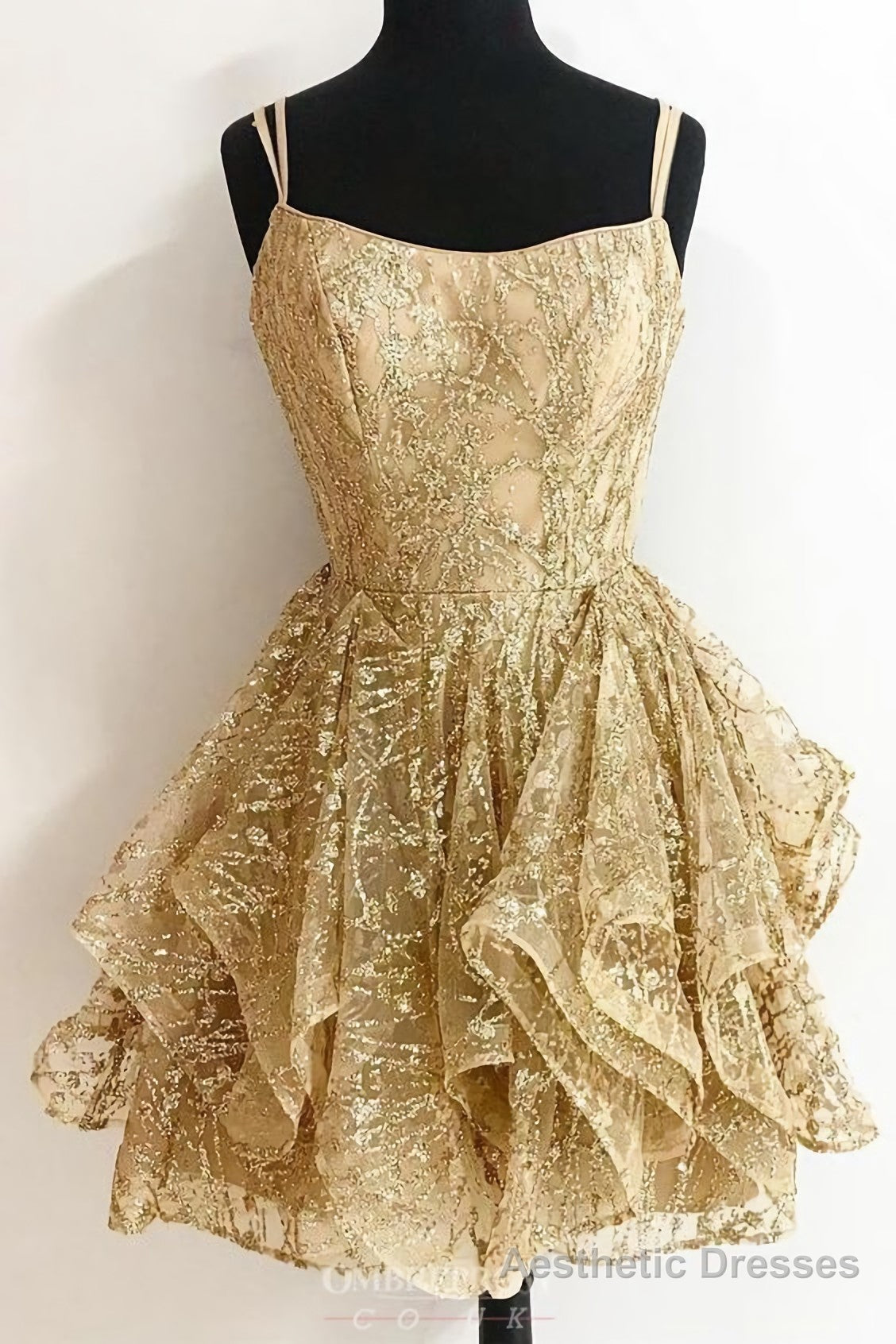 A Line Sequins Gold Short Homecoming Dresses, Glitter Cocktail Party Dress