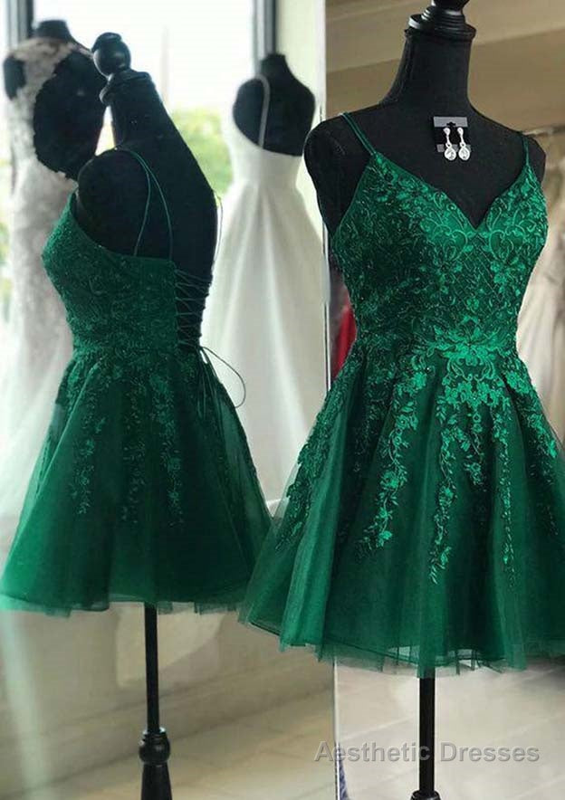 A-line Sleeveless Lace Tulle Homecoming Dress With Appliqued Beading