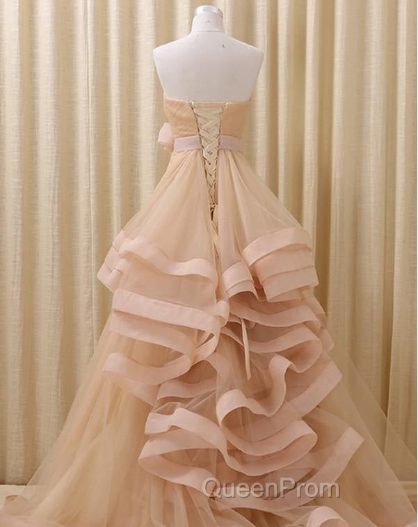 A-Line Stomacher Tiered Wedding Dresses Court Train With Appliques