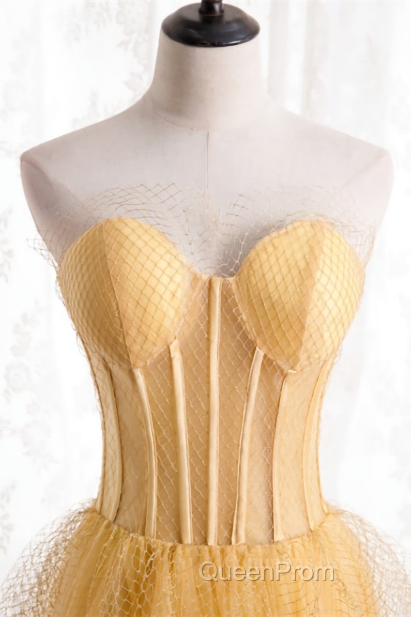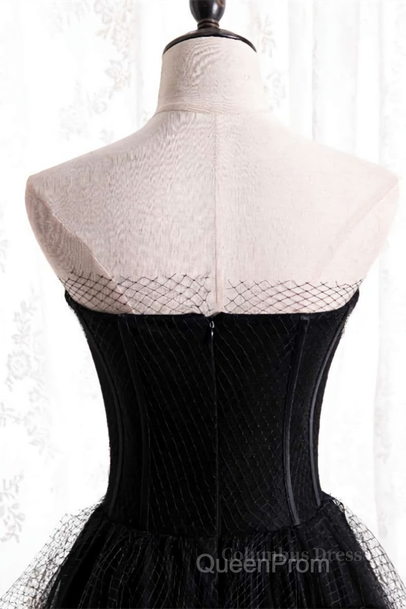 A-line Strapless Tulle Long Formal Dresses with Multi Flares Boning