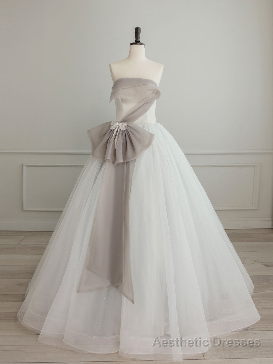 A-Line Tulle White Long Prom Dress, White Formal Party Dress