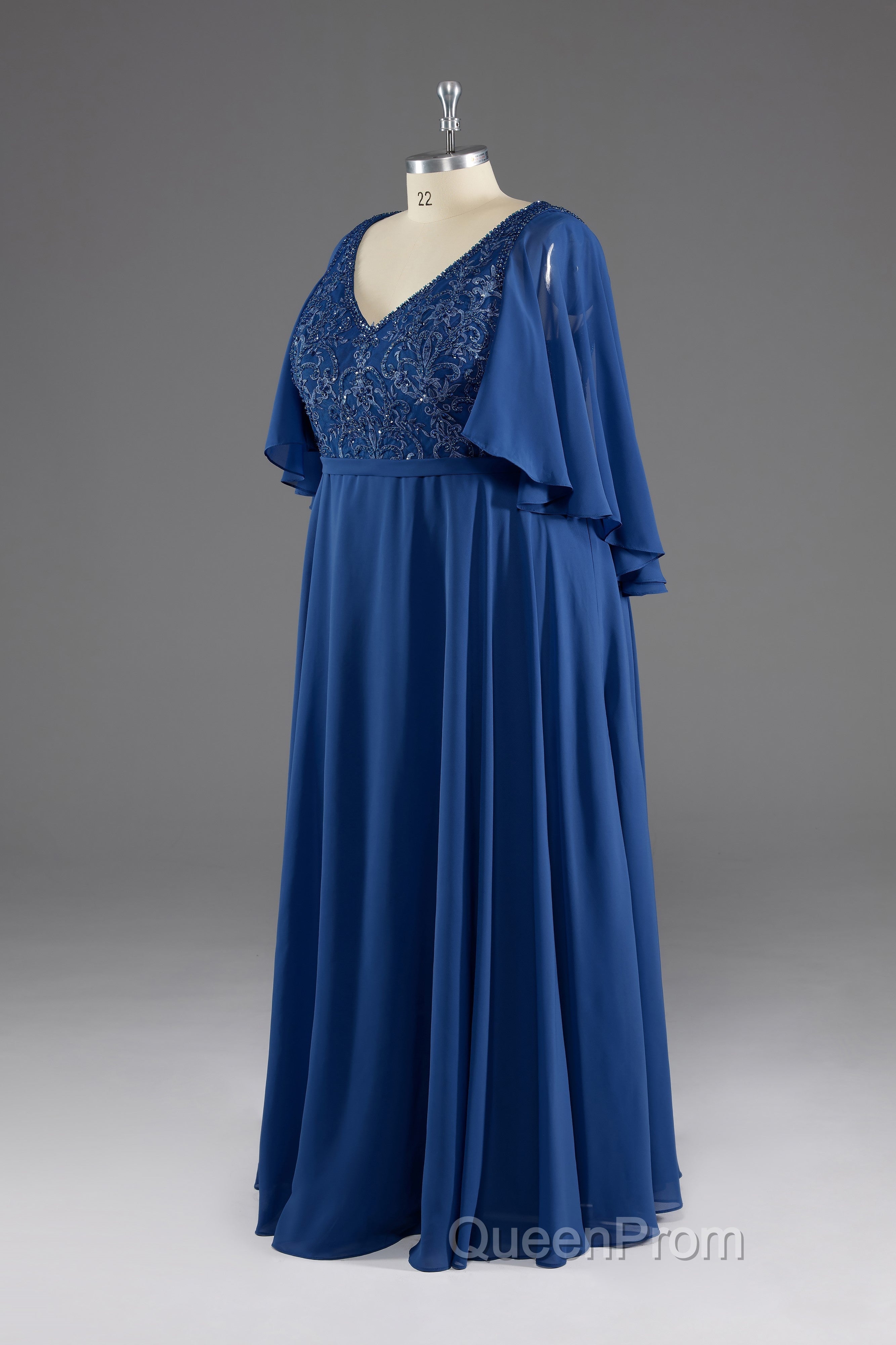 A-line V-Neck Short Sleeves Chiffon Mother of The Bride Dresses