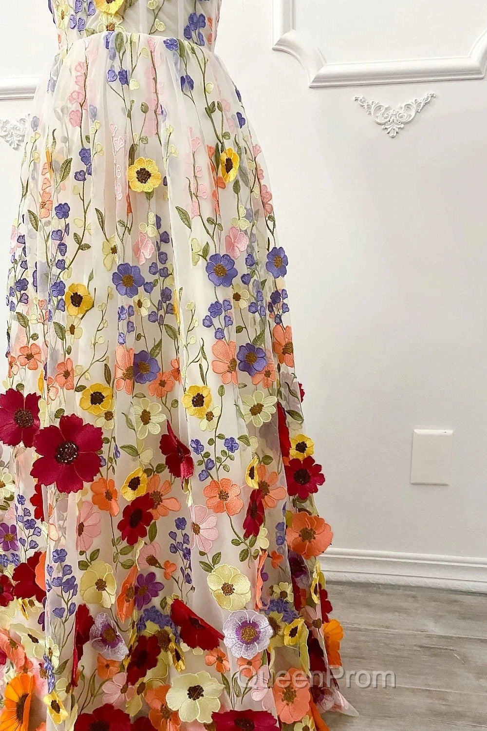 A-Line Wedding Guest Dresses Floral Dresses Wedding Guest Floor Length Sleeveless Illusion Neck Wednesday Addams Family Cotton Backless With Embroidery Appliques