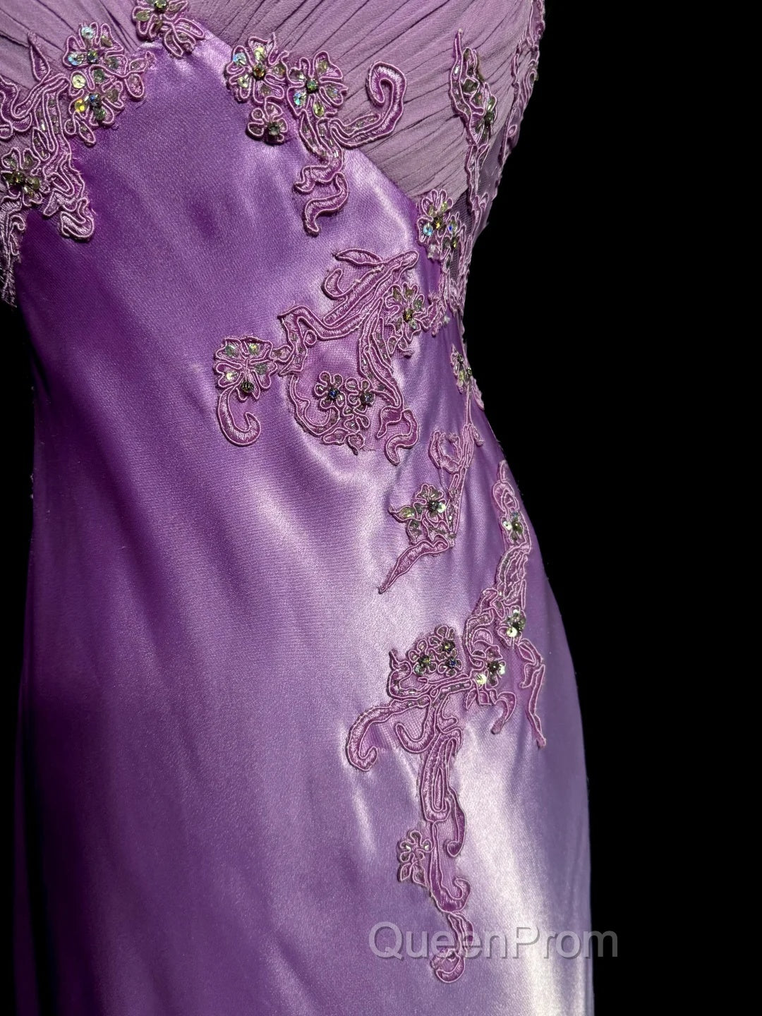 Aesthetic A Line Halter Neckline Lilac Satin Evening Prom Dresses Ruffle Long Party Dresses