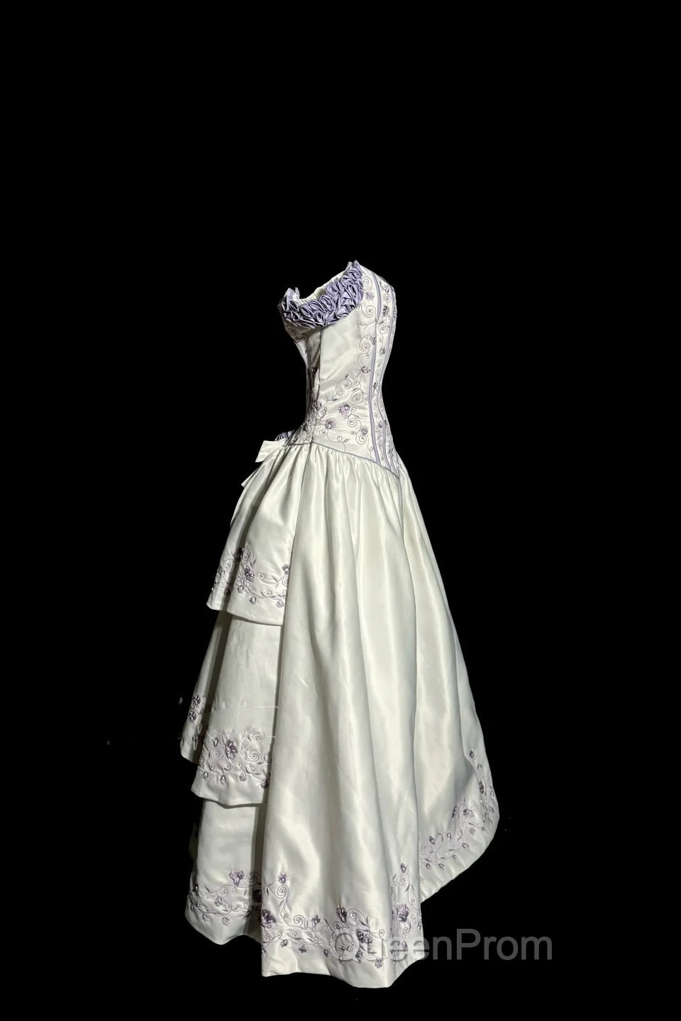 Aesthetic Ball Gown Off The Shoulder White Evening Prom Dresses Ruffle Long Party Dresses