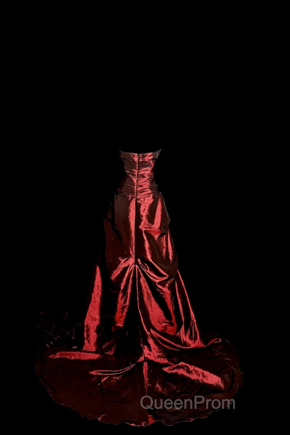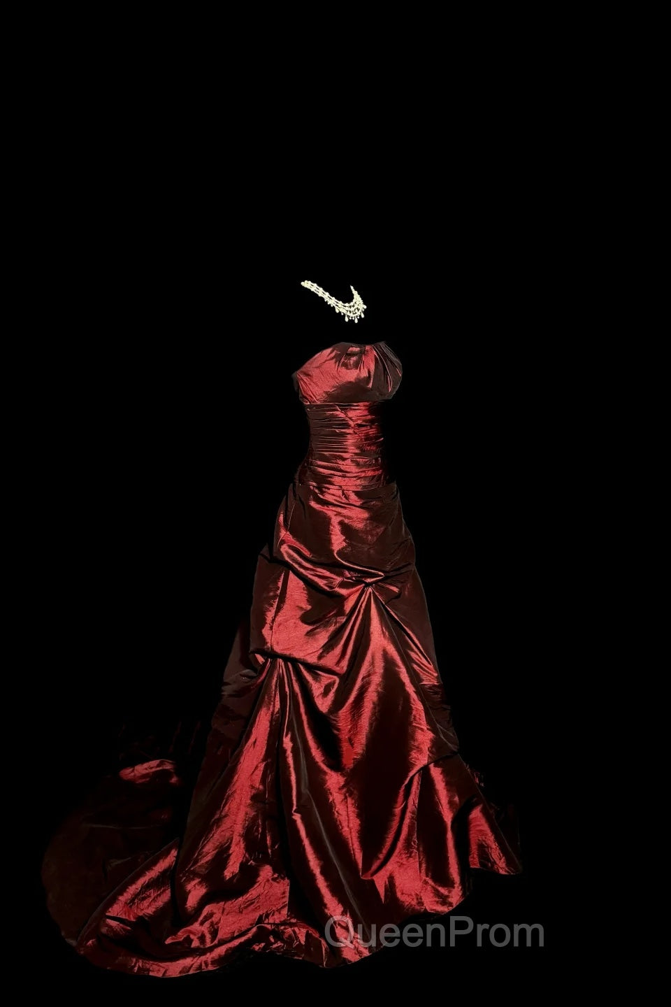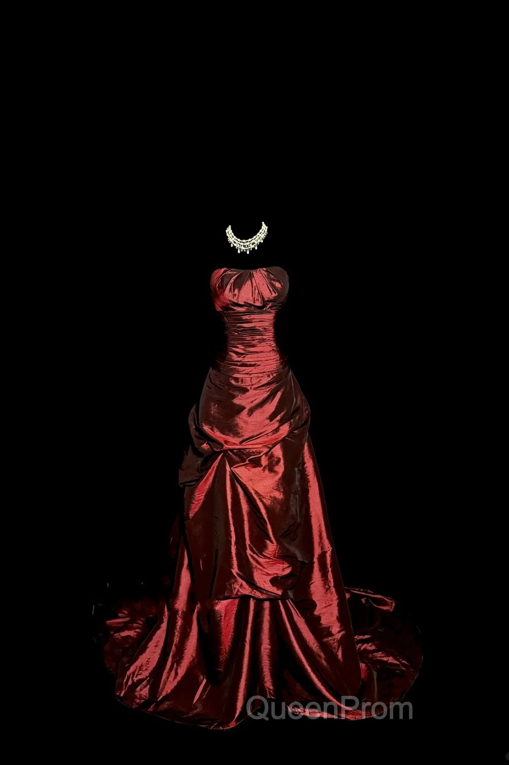 Aesthetic Ball Gown Strapless Burgundy Taffeta Evening Prom Dresses Ruffle Long Party Dresses
