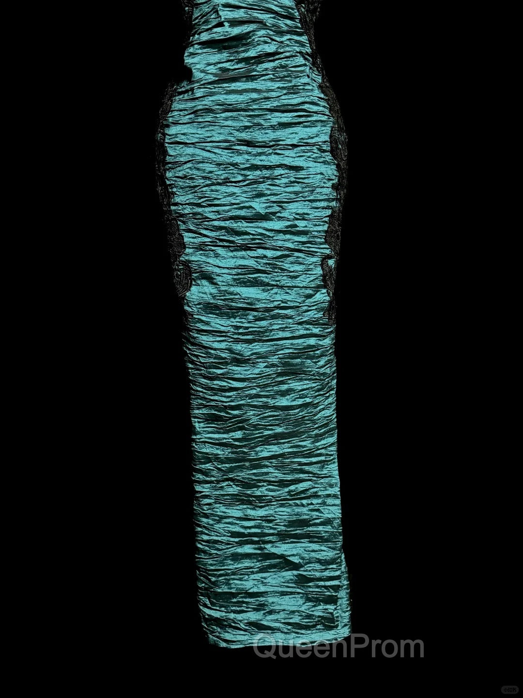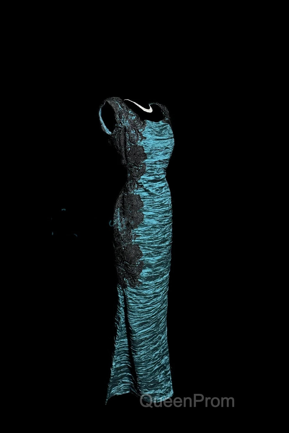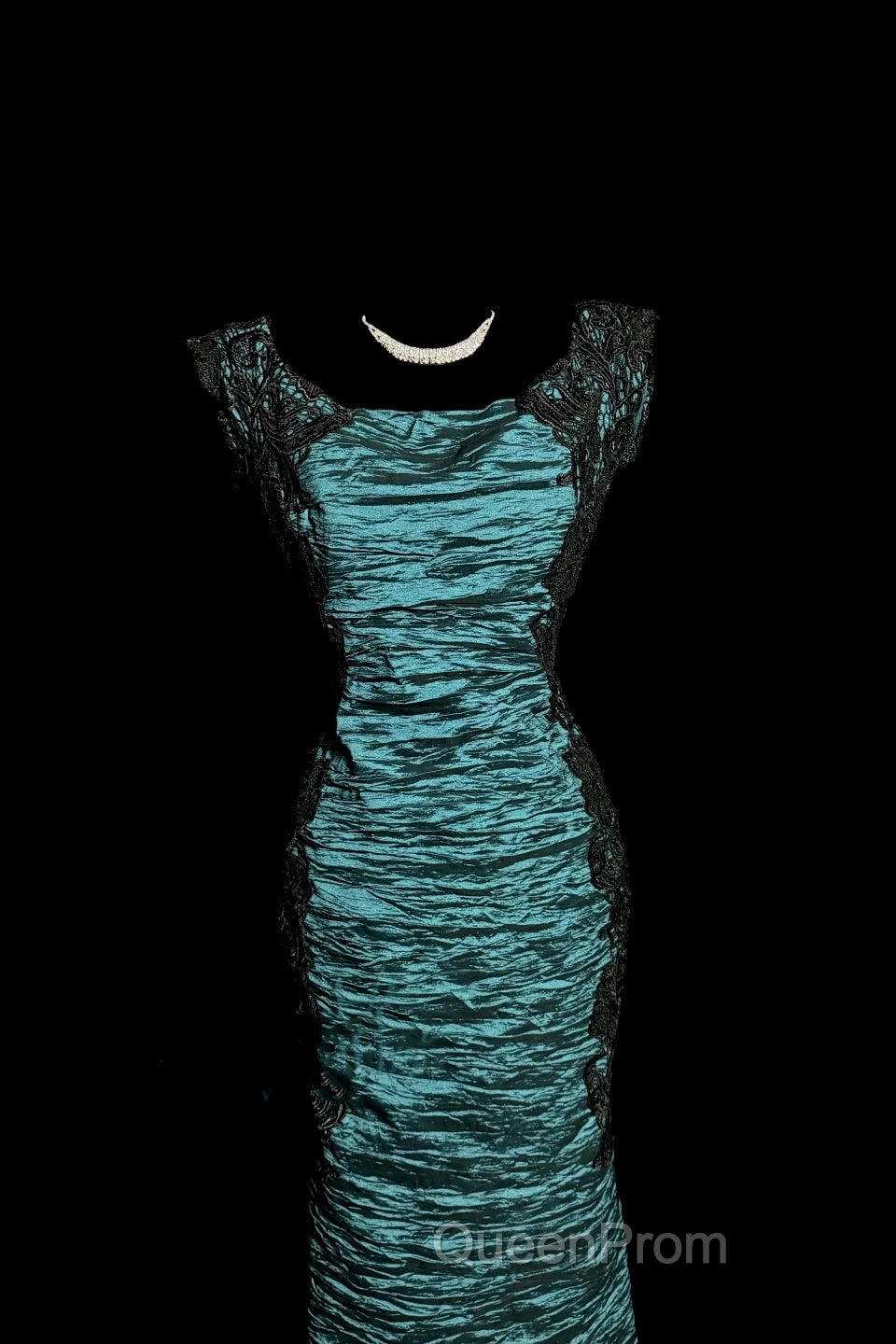 Aesthetic Mermaid Square Neckline Blue Taffeta Evening Prom Dresses Ruffle Long Party Dresses