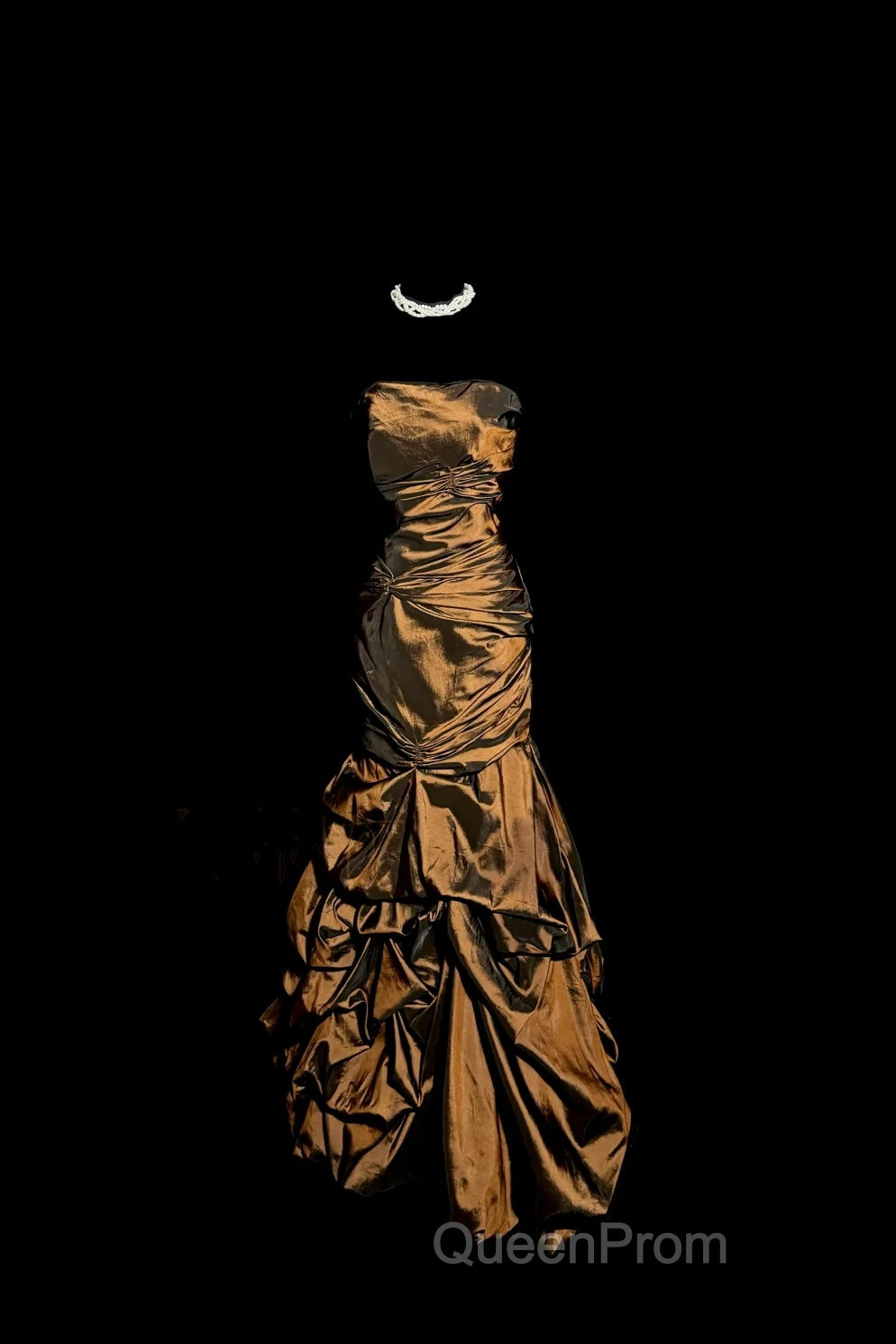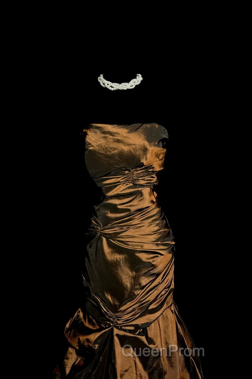 Aesthetic Mermaid Strapless Neckline Brown Taffeta Evening Prom Dresses Ruffle Long Party Dresses