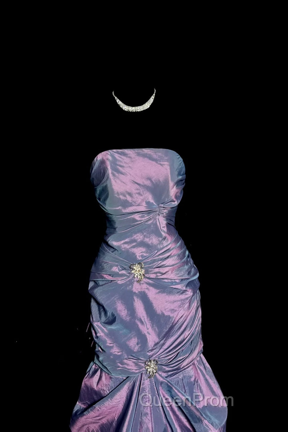 Aesthetic Mermaid Strapless Neckline Grape Taffeta Evening Prom Dresses Ruffle Long Party Dresses