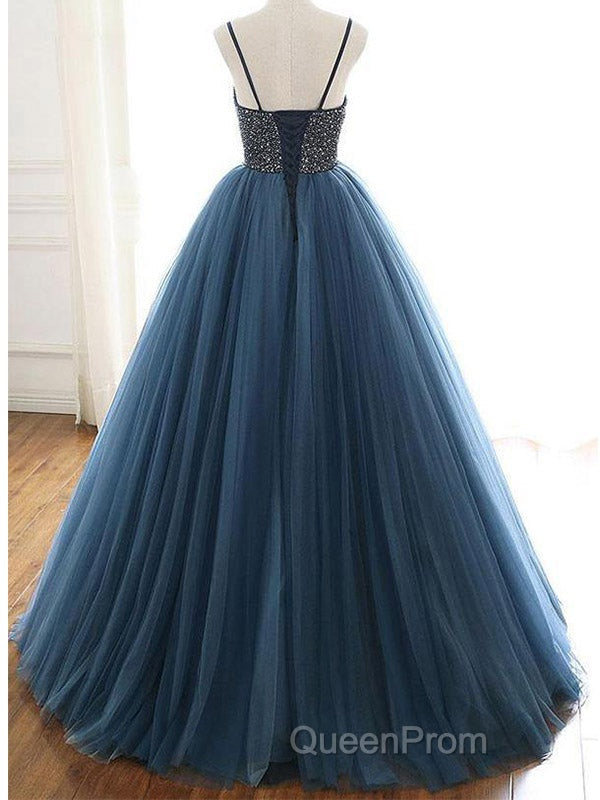 Ball Gown Deep Blue Tulle Evening Prom Dresses Evening Dresses With Beading,