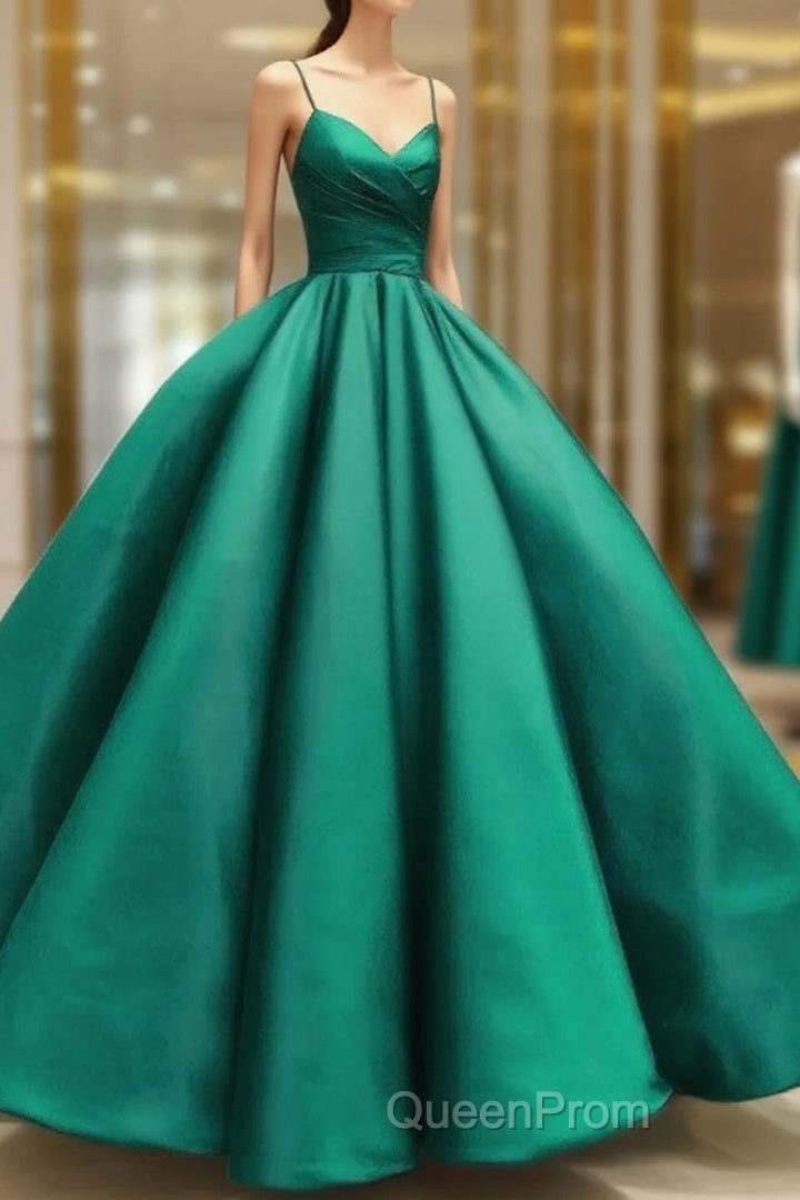 Ball Gown Dresses Satin V-Neck Spagetti Straps