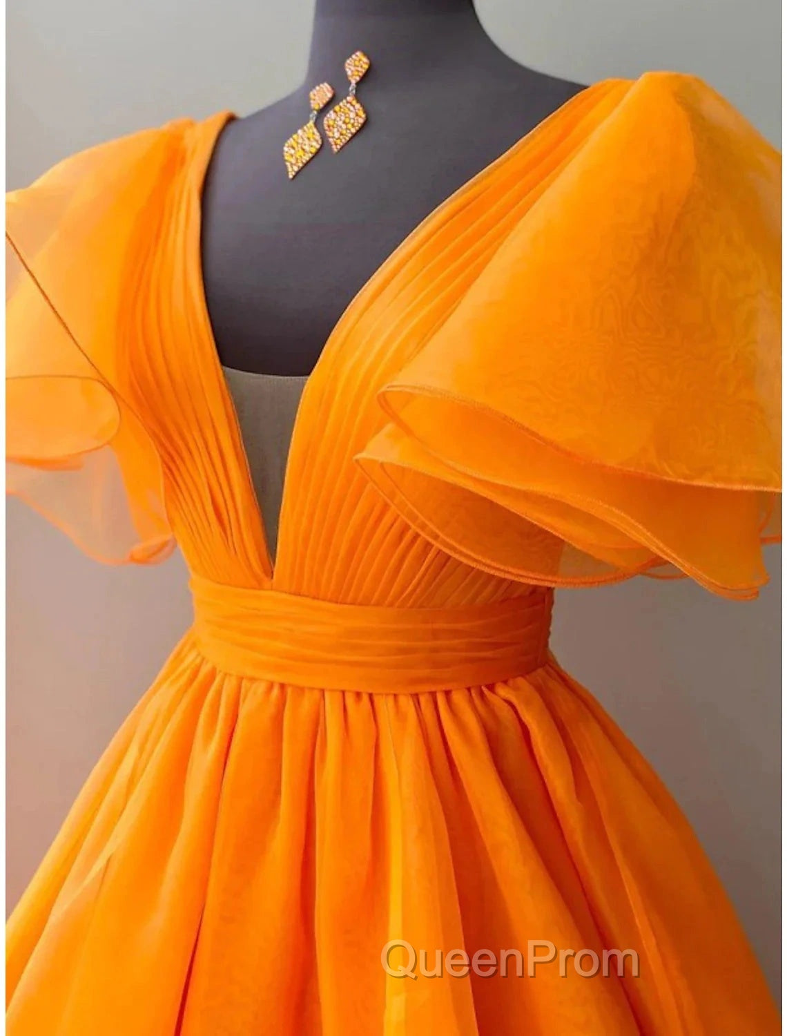 Ball Gown Evening Gown Celebrity Style Dresses Wedding Party Dresses Floor Length Short Sleeve V Neck Fall Wedding Guest Organza With Pleats Ruffles