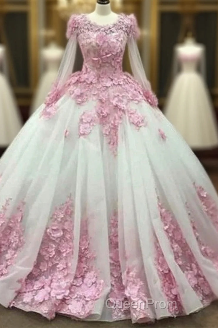 Ball Gown Long Sleeve Tulle Evening Prom Flowers Wedding Dresses