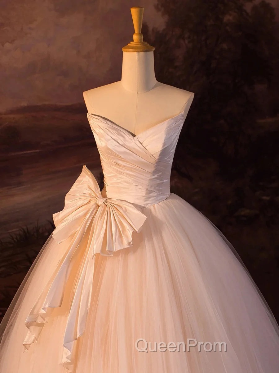 Beautiful A-Line Strapless Tulle Long Evening Prom Dresses Evening Dresses