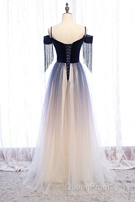 Beautiful Blue Gradient Tulle Long Party Dresses,A-Line Off Shoulder Formal Dresses