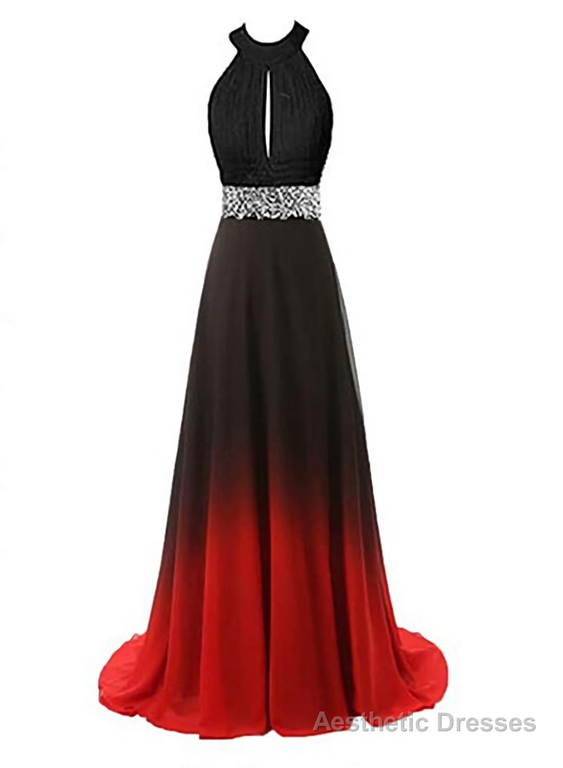 Beautiful Gradient Color Halter Beaded Party Dress, Red And Black Prom Dress