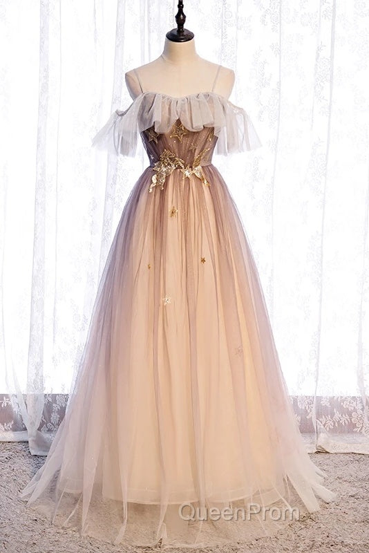 Beautiful Gradient Tulle With Straps Sweetheart Party Dresses, A-Line Tulle Evening Dresses Evening Prom Dresses