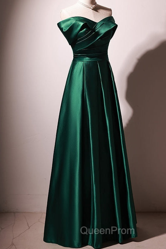 Beautiful Green Satin A-Line Off Shoulder Evening Prom Dresses, Green Evening Dresses Party Dresses