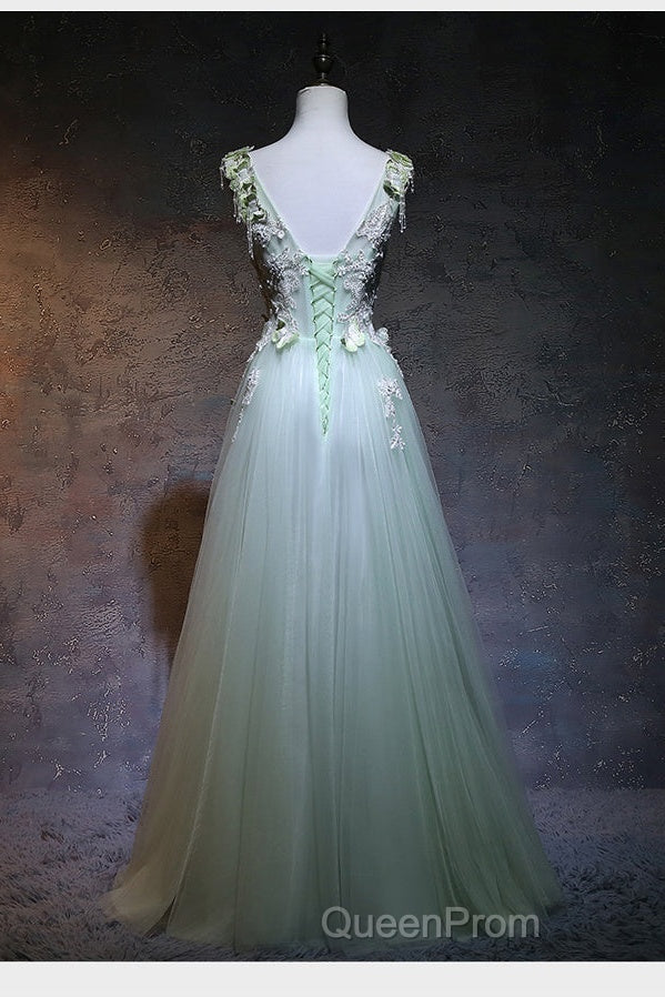 Beautiful Light Green Tulle Long Party Dresses, A-Line Floor Length Evening Prom Dresses