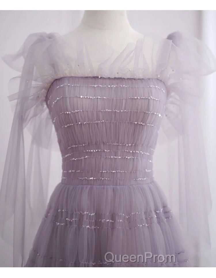 Beautiful Light Purple Tea Length Soft Tulle Party Dresses, Cute Short Homecoming Dresses Formal Dresses