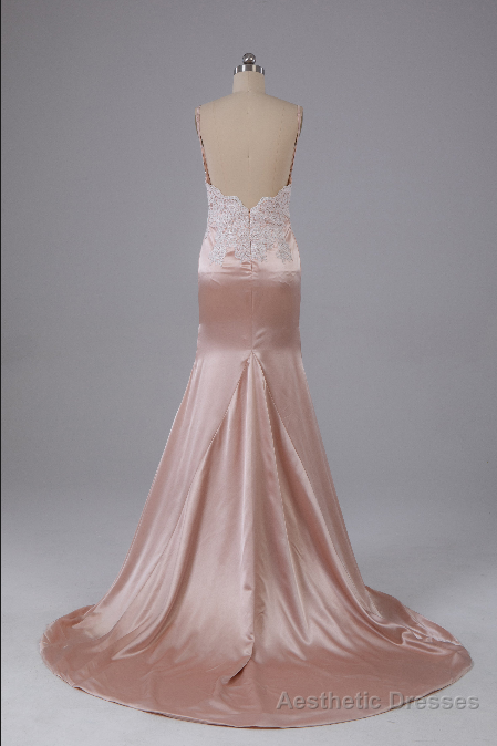 Beautiful Open Back Sweep Train Prom Dress with Lace Appliques