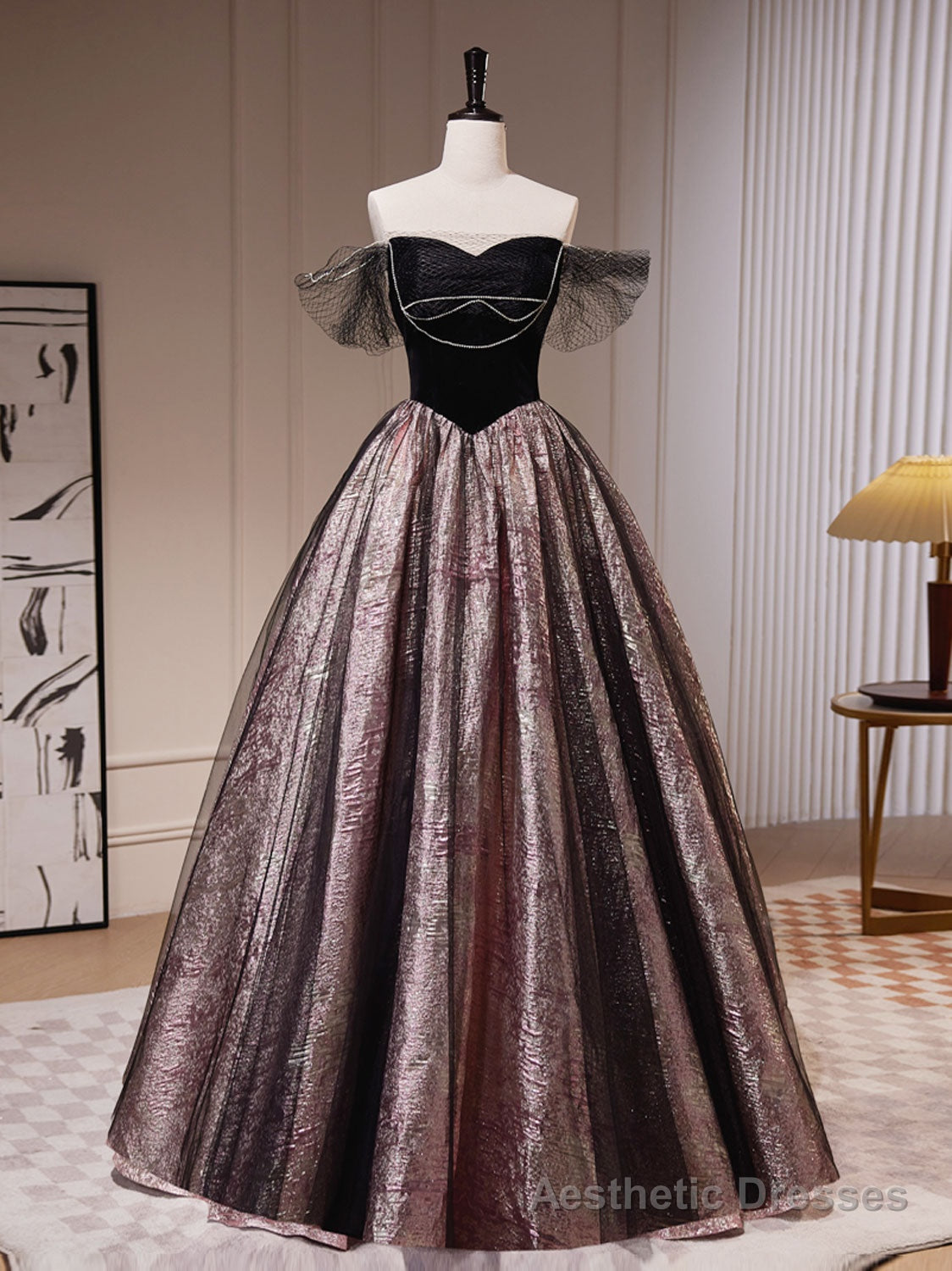 Black A-Line Satin Tulle Long Prom Dresses, Black Formal Black Evening Dress