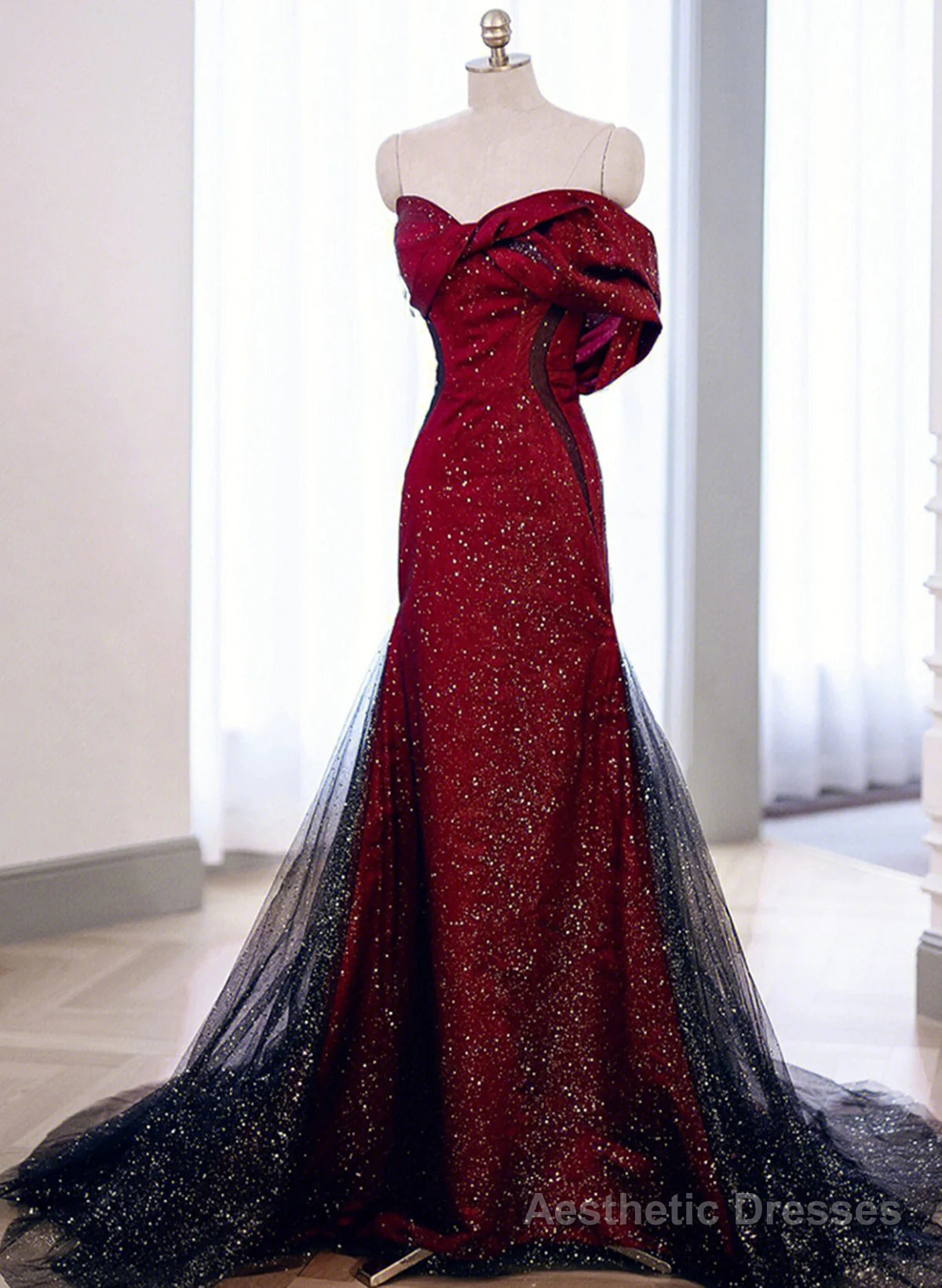 Black And Red Long Party Dress Prom Dress, Sweetheart Satin Evening Dress Formal Dress