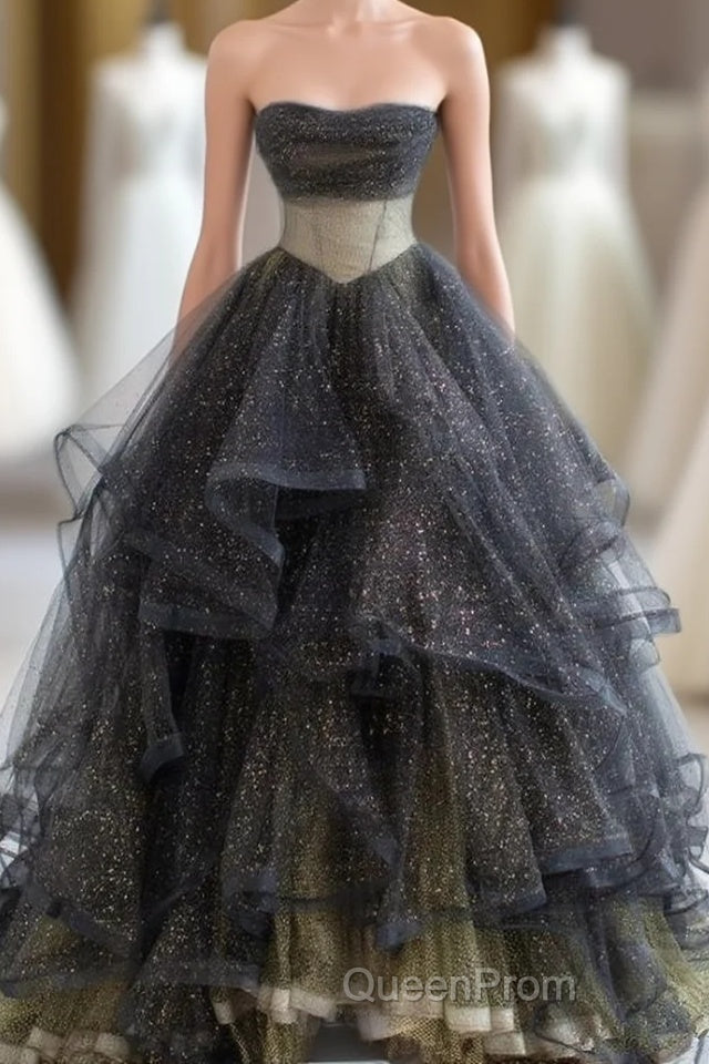 Black Ball Gown Long Evening Prom Dresses, Black Evening Dresses