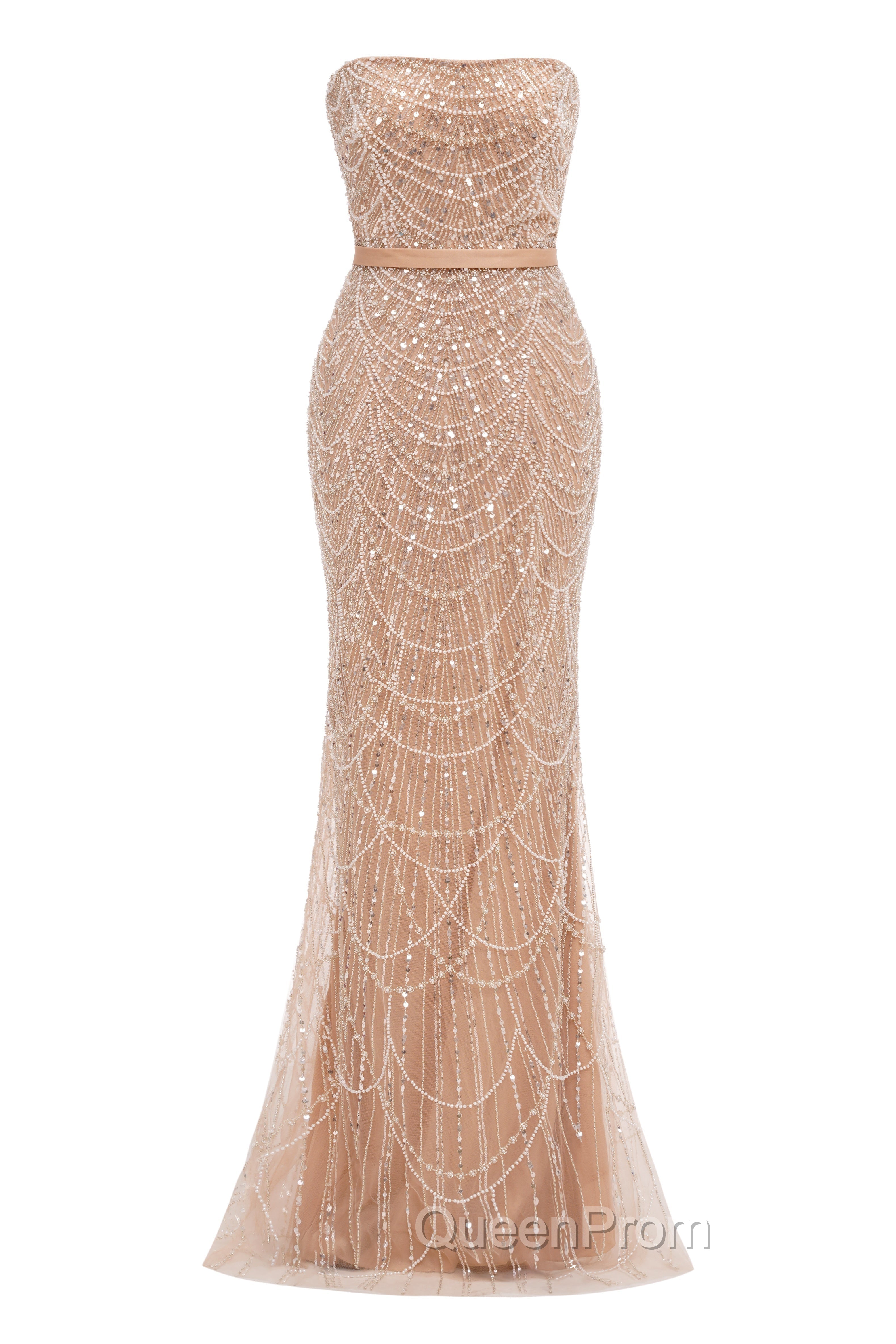BlackBeading Evening Prom Dresses Sweep Train High Neck Zipper Sleeveless Evening Dresses