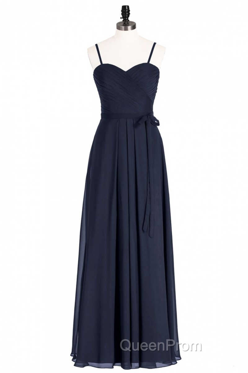 Black Chiffon Sweetheart Spaghetti Straps A-Line Long Bridesmaid Dresses