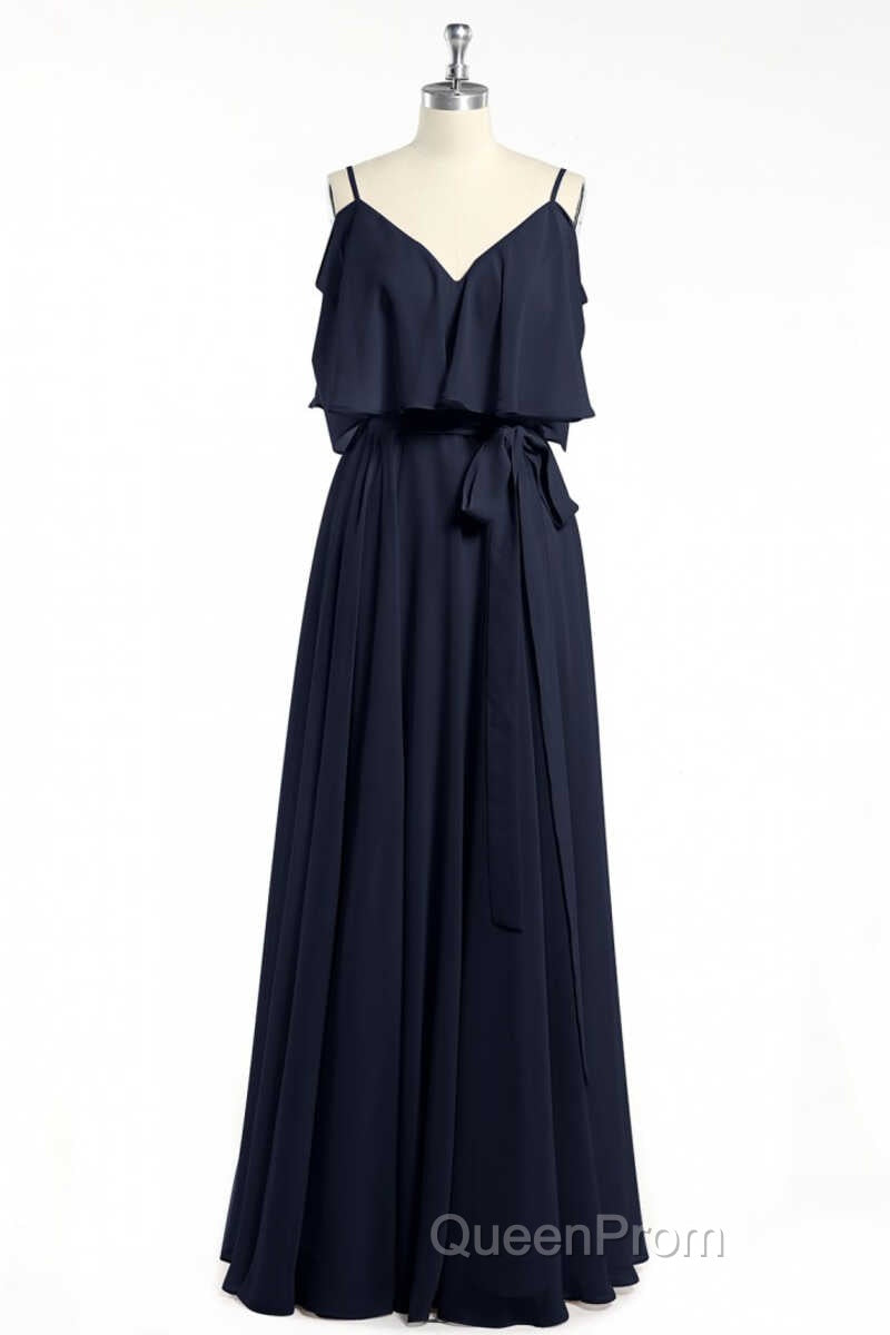 Black Chiffon V-Neck Ruffled A-Line Long Bridesmaid Dresses