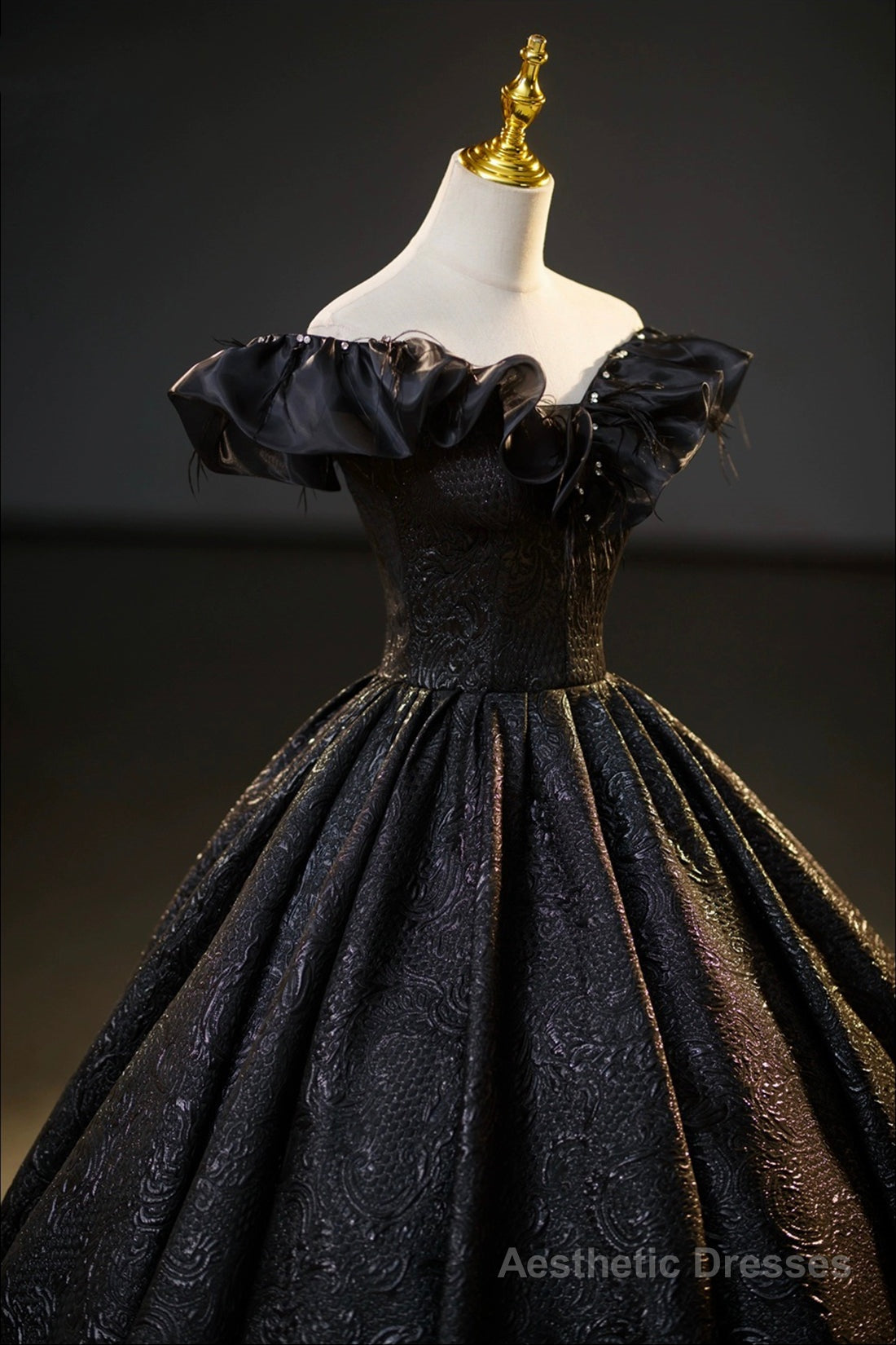 The Black Floor Length V-neck Off the Shoulder Formal Dress feature delicate floral embellishments that exude femininity and romance, while the tulle fabric adds a touch of elegance. The off-shoulder neckline adds a modern and glamorous flair, highlighting the shoulders and collarbone. With their flowing silhouettes and floor-length designs, these dresses create a captivating and ethereal look. Whether its a prom or an evening event, these dresses offer a range of sizes to ensure a perfect fit. Embrace the beauty and sophistication of these dresses, leaving a lasting impression at your special occasion.