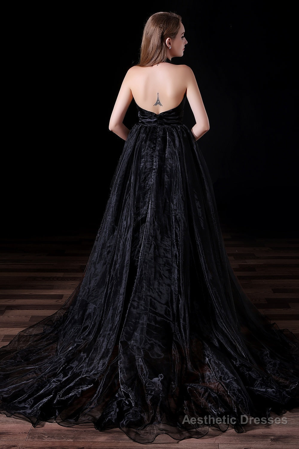 Black Halter Deep V neck Backless Tulle Floro Length Prom Dresses