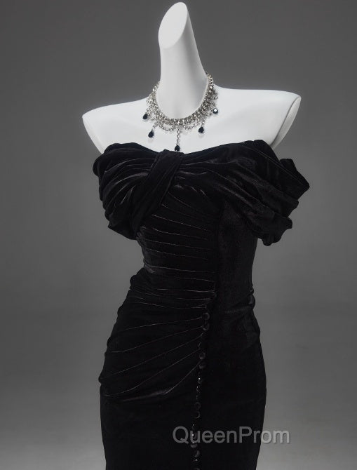 Black Mermaid Off-The-Shoulder Velvet Long Evening Prom Dresses, Elegant Quinceanera Dresses