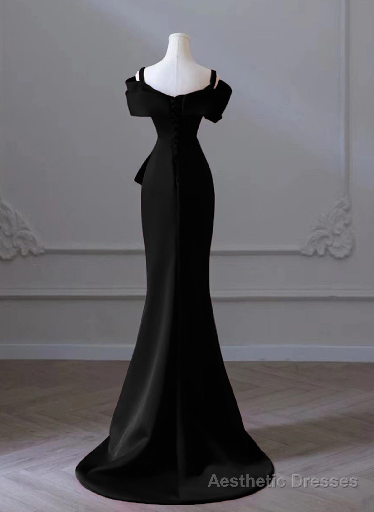 Black Mermaid Sweetheart Off Shoulder Prom Dress, Black Satin Evening Dress