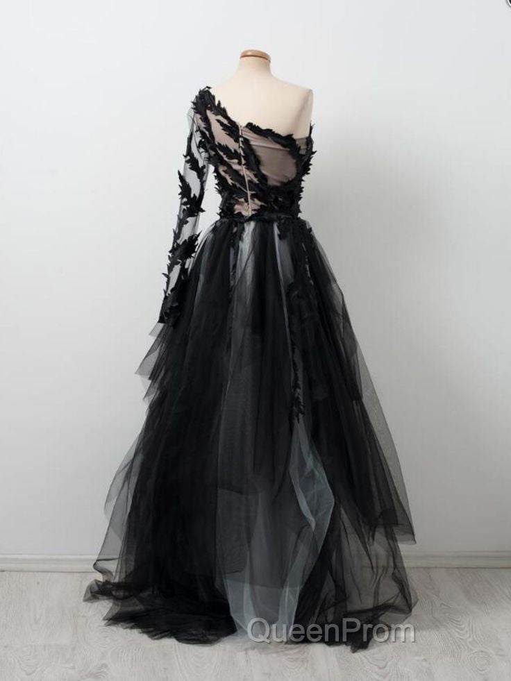 Black One Shoulder Tulle Long Evening Prom Dresses Evening Dresses