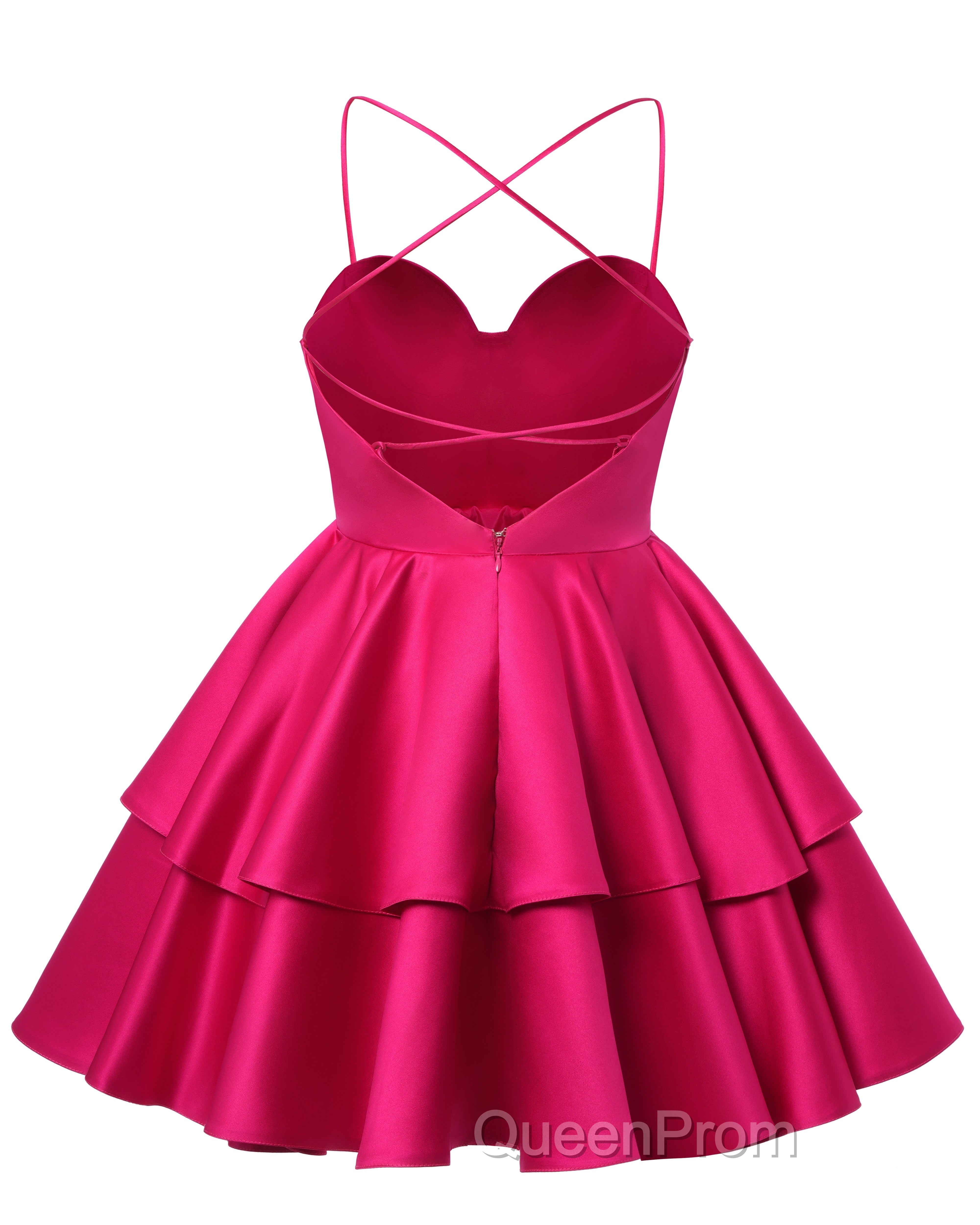 Black Satin Homecoming Dresses Sweetheart Neck Tiered Short Graduation Dresses