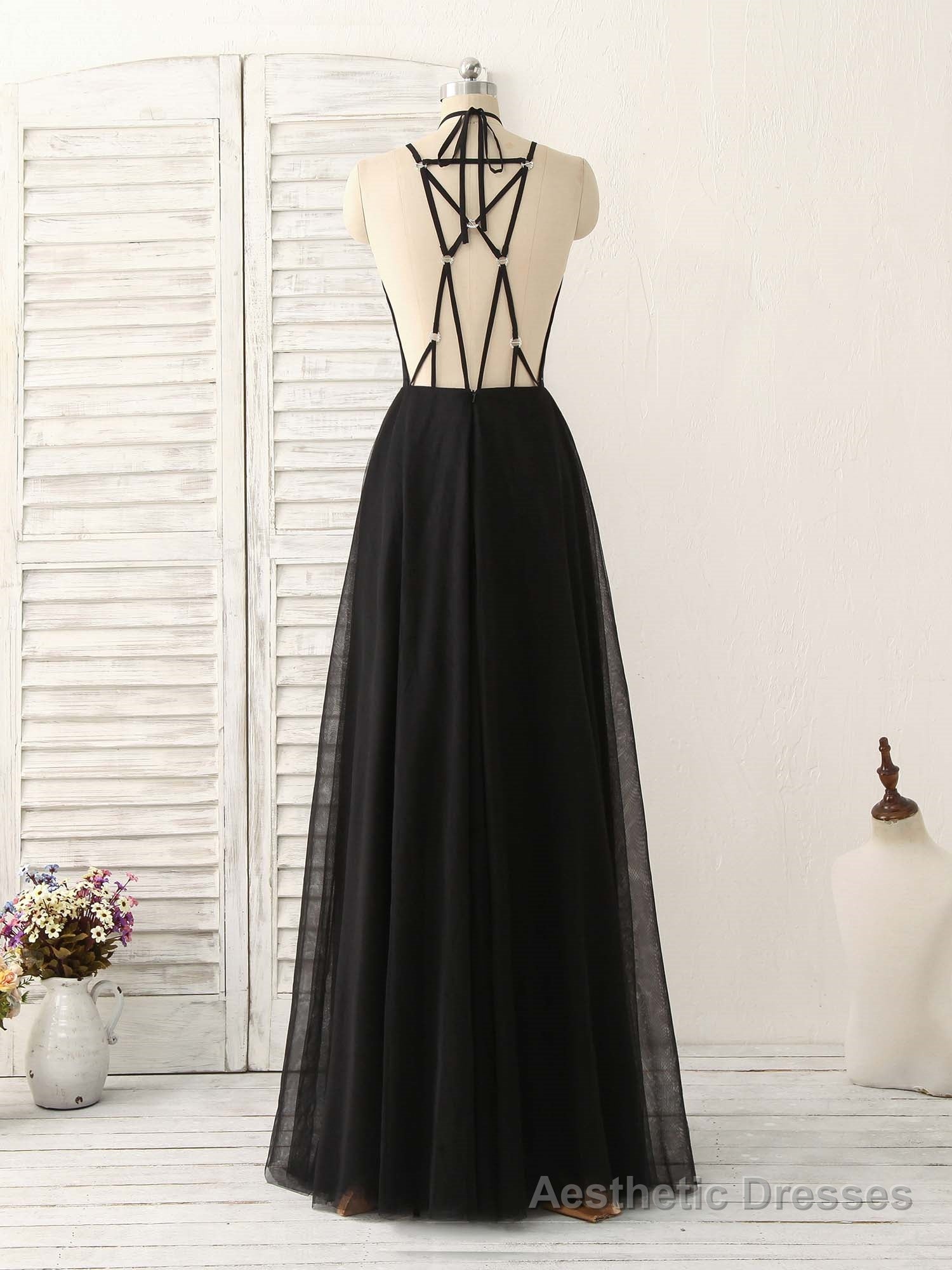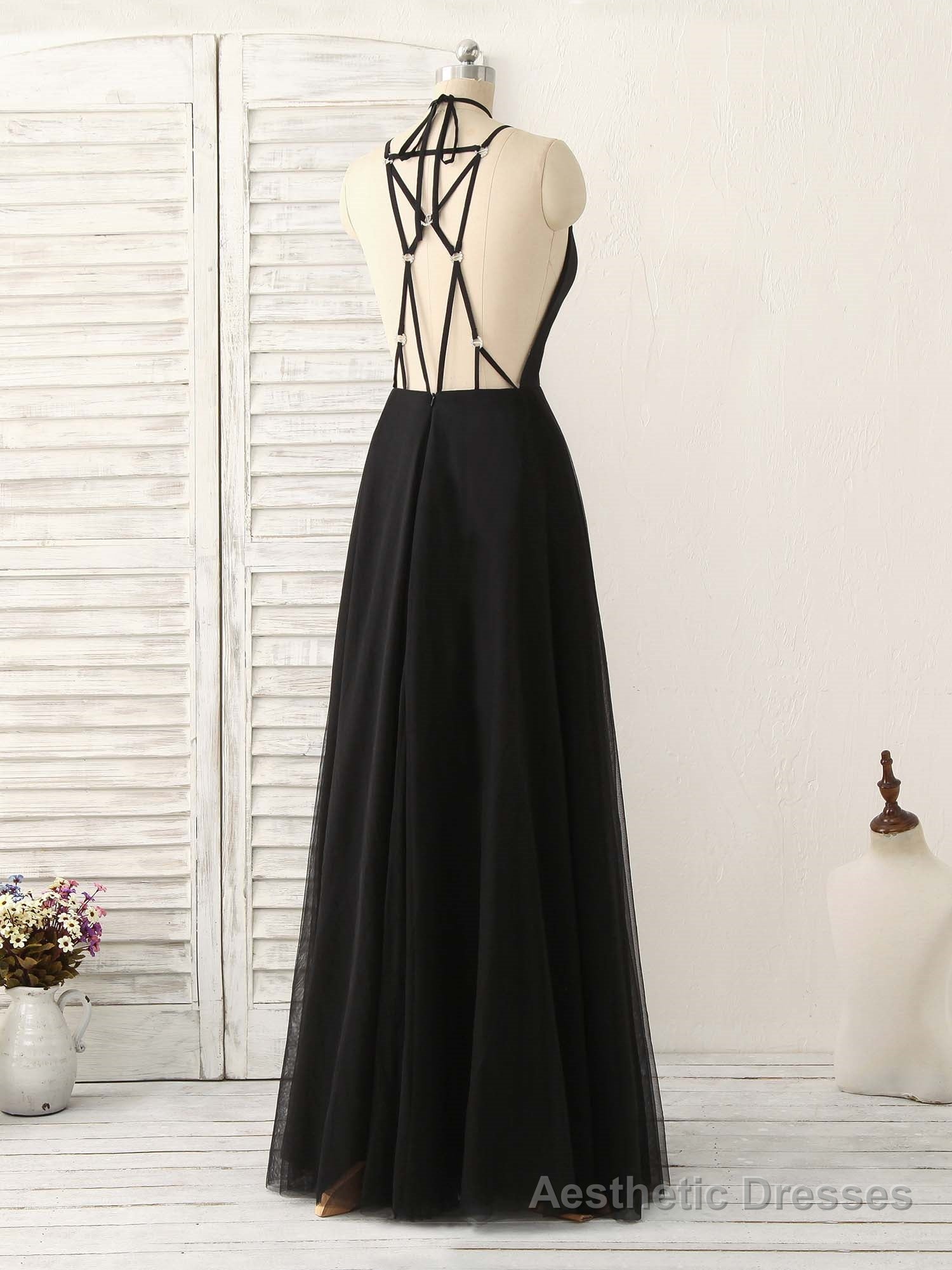 Black Tulle Backless Long Prom Dress, Black Evening Dress