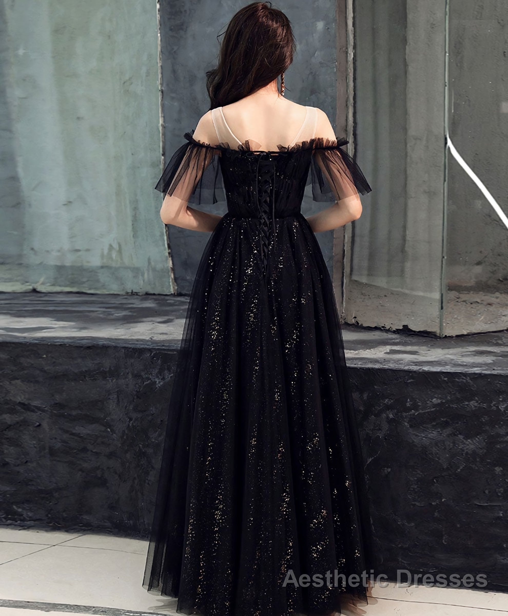 Black Tulle Off Shoulder Long Prom Dress, Black Formal Dress