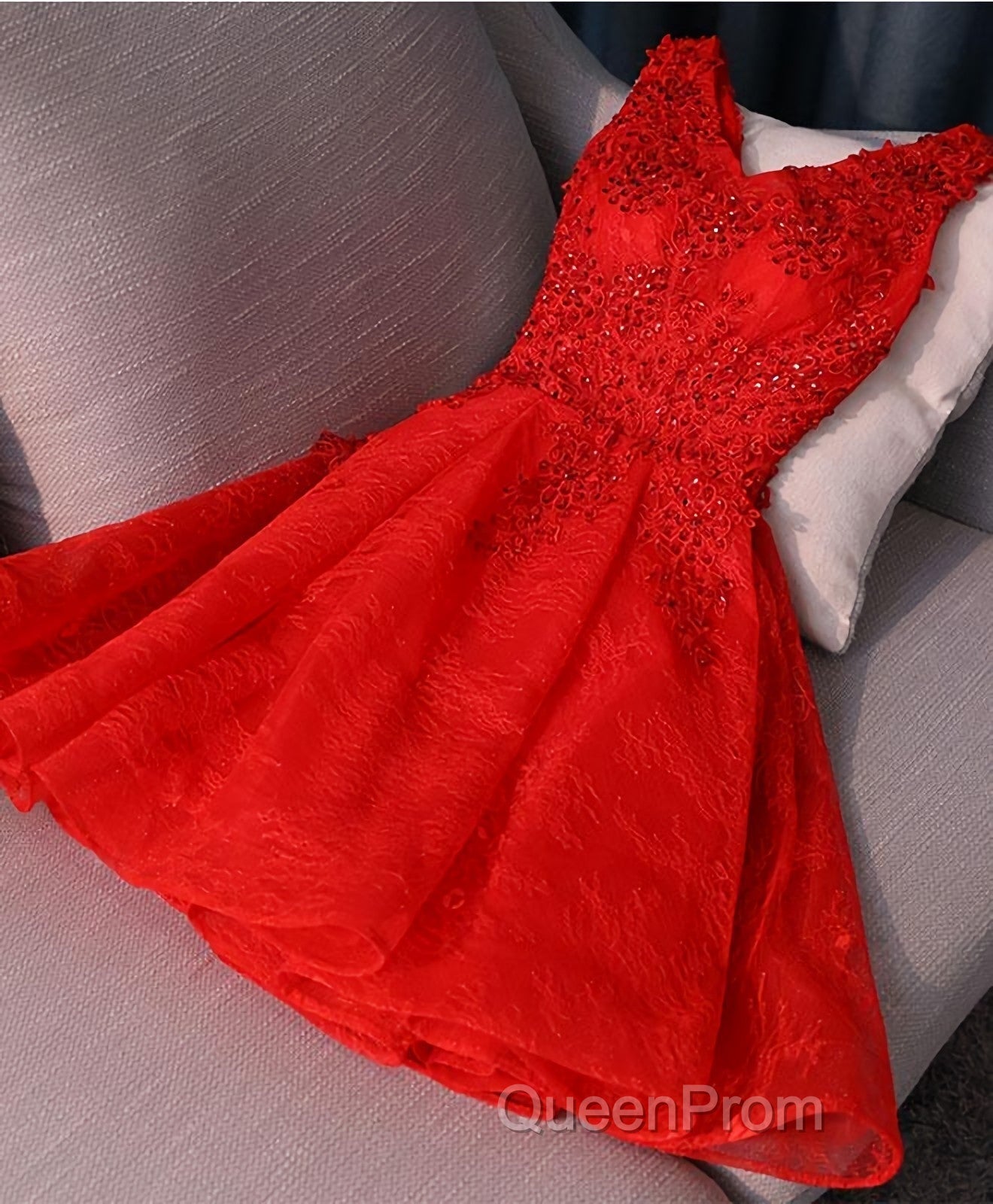 Black V Neck Lace Short Evening Prom Dresses, Homecoming Dresses, Homecoming Dresses