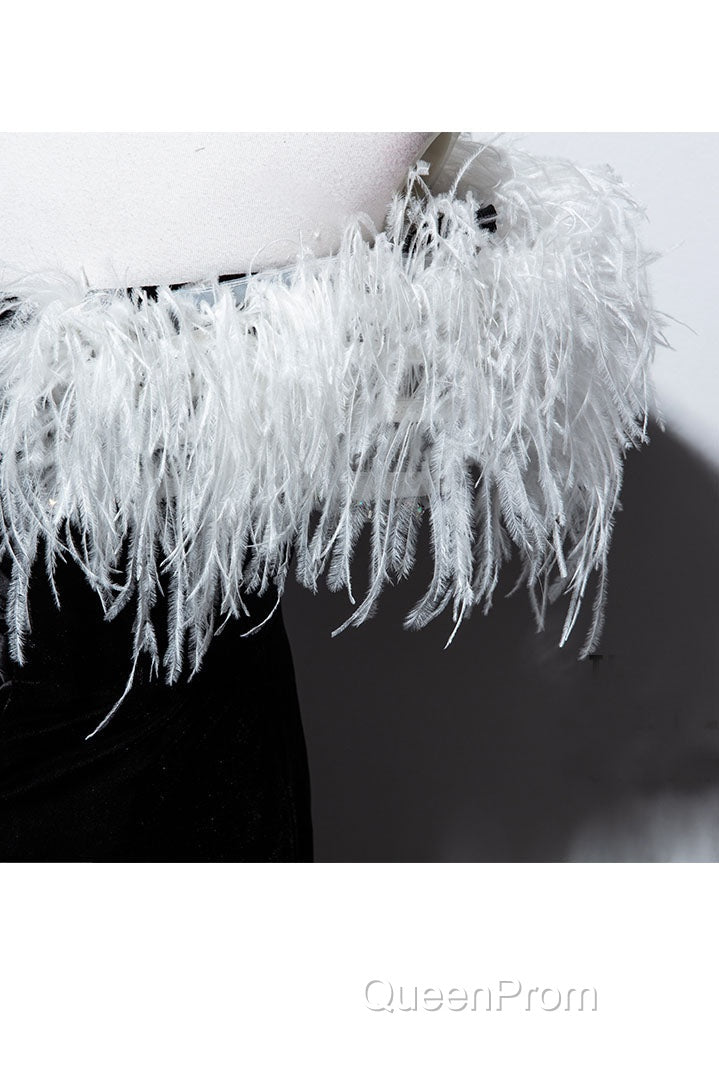Black Velvet Mermaid Evening Prom Dresses with Feather, Off the Shoulder Long Evening Gown