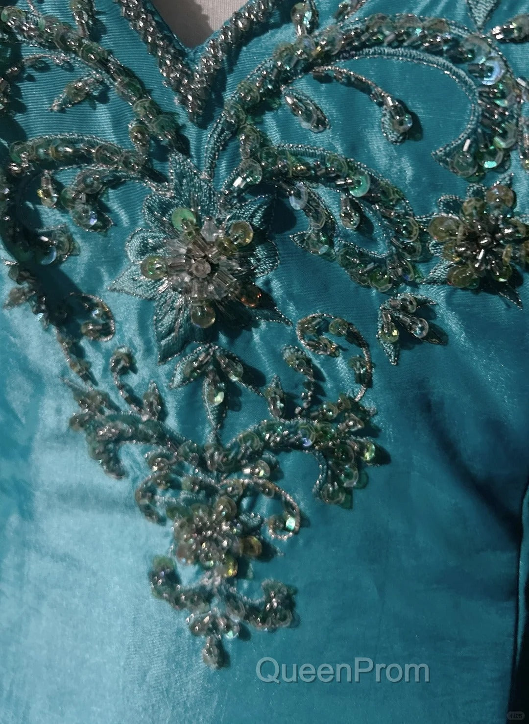 Blue A-Line Spaghetti Straps Satin Beaded Long Evening Prom Dresses Sweetheart Neck Applique Graduation Evening Prom Dresses